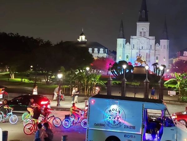 Nola City Lights offers a breathtaking view of this vibrant city illuminated at night. We travel thru 4 historic neighborhoods, passing some of the cities most historic landmarks. We provide a ride leader ,music, bottle water and a Emergency Response Vehicle that follows the ride with extra bikes in the event there is a break down . If someone on the ride reaches there limit we put them and there bike on the truck and keep the party moving. We call that Man Down. Join us for an unforgettable evening filled with stunning displays and enchanting sights.